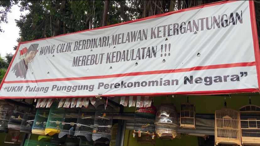 Spanduk yang di pasang sebagai bentuk penolakan relokasi para pedagang Sumber Foto: Ahmad Fadlan Azizi/ Pilihan-Rakyat