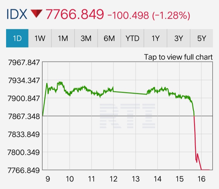 Pilihan-Rakyat.com, Jakarta — Indeks Harga Saham Gabungan (IHSG) ditutup melemah signifikan pada perdagangan, Senin (8/9), seiring sentimen negatif dari reshuffle Kabinet Merah Putih. IHSG ditutup merosot 100,5 poin atau 1,28% ke level 7.776,85.